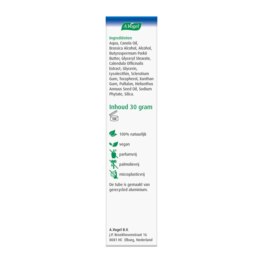 A.Vogel Crème Calendula bevordert herstel van de huidCrème Calendula van A.Vogel is een milde huidcrème die een schrale huid helpt deze te herstellen. Crème Calendula is ook heel goed te gebruiken als Aftersun, de crème verkoelt en verzorgt de huid die verbrand is door felle zon.Verzorgt en verzacht een schrale huidBevordert het herstel van de huidVerkoelt en verzorgt de huid bij zonnebrand.Bevat rustgevende lavendel100% natuurlijk