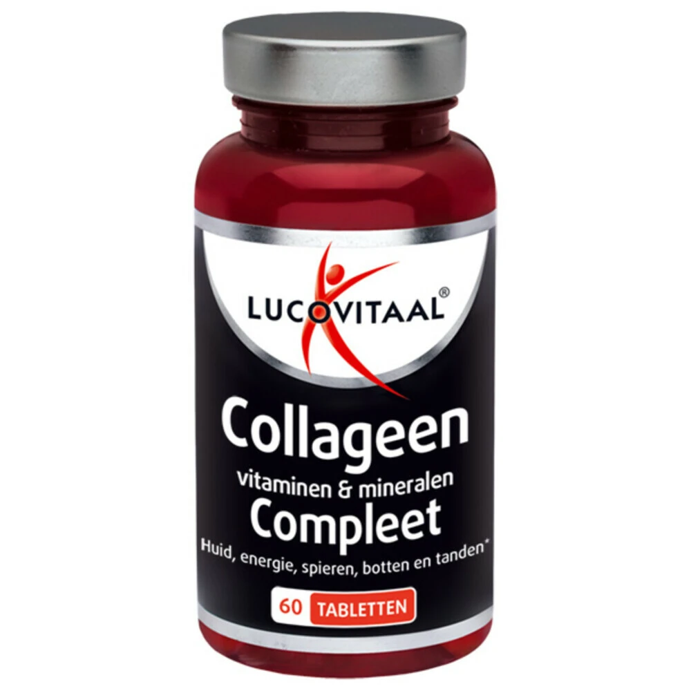 Lucovitaal Collageen Super Compleet +Multi A-ZCollageen Super Compleet +Multi A-Z van Lucovitaal is speciaal gemaakt voor volwassenen en bevat vitamine C. Vitamine C draagt bij aan de vorming van collageen dat helpt om de huid te verstevigen (van binnenuit) en is goed voor het behoud van sterke botten en tanden. Lucovitaal Collageen Super Compleet +Multi A-Z:Vitamine C draagt bij aan het behoud van sterke botten en tandenVitamine E helpt cellen te beschermen tegen invloeden van vervuilingZink