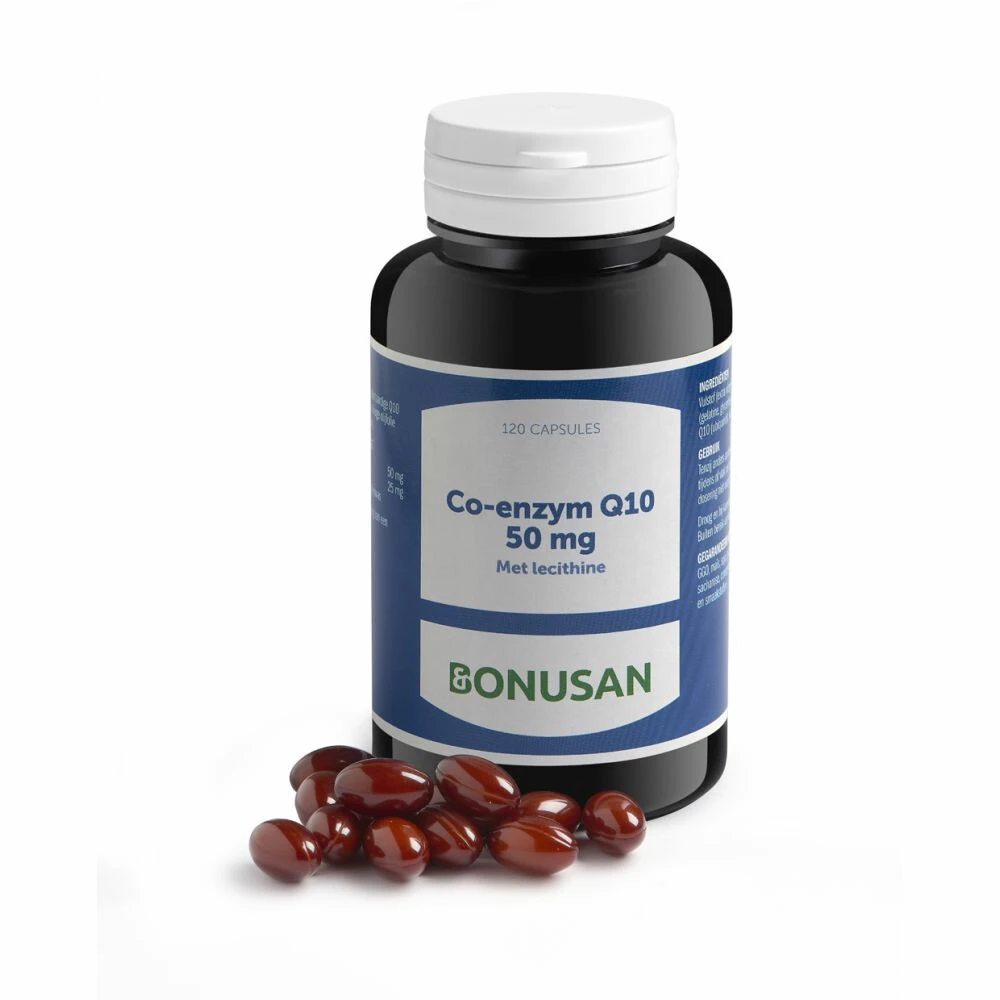 Bonusan Co-enzym Q10 50 mgCo-enzym Q10 50 mg bevat zuiver plantaardige Q10 uit fermentatie. De basis van extra vierge olijfolie, bijenwas en lecithine zorgt voor een grotere biologische beschikbaarheid. Hierdoor wordt Q10 beter in het lichaam opgenomen.Olijfolie: hogere biologische beschikbaarheidZuiver plantaardige Q10Zeer goed opneembaarHoge biologische beschikbaarheidGoed opneembaardoor matrix van olijfolie, bijenwas en lecithine 50 mg co-enzym Q10 per capsule