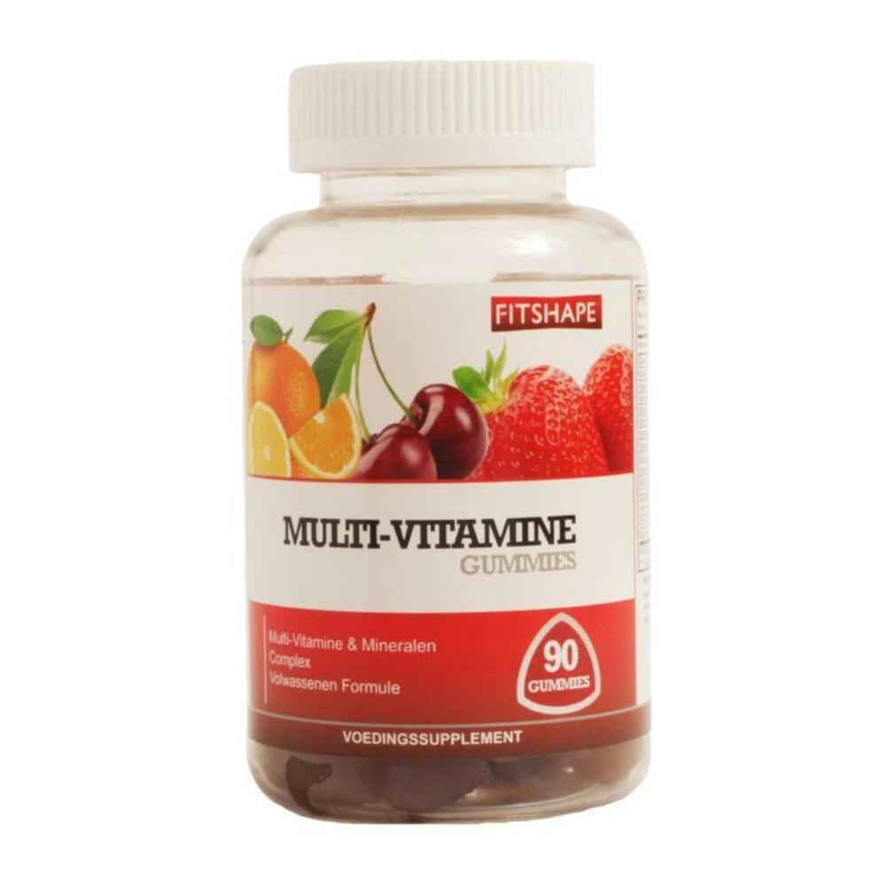 Fitshape Multivitamine GummiesMultivitamine is een voedingssupplement waarin alle essentiële voedingsstoffen verwerkt zitten, namelijk vitamines, mineralen en spoorelementen. Daarnaast zijn er aan sommige multi’s nog kruiden, enzymen, aminozuren en/of andere waardevolle voedingsstoffen toegevoegd. Er bestaan laag gedoseerde en hoog gedoseerde multi’s, multivitaminen in tablet-, capsule- of poedervorm en speciale formules voor mannen, (zwangere) vrouwen, senioren, kinderen en veg