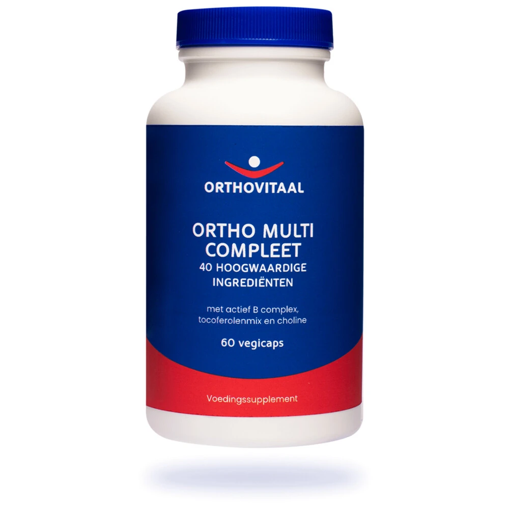 Orthovitaal Ortho Multi CompleetOrthovitaal Multi Compleet is een volledige multi formule van zeer hoge kwaliteit. Er is gekozen voor diverse actieve B vitamines (B2, B6, B12 en foliumzuur) en de organische mineraal ingrediënten zoals magnesiumtauraat, kopercitraat, mangaancitraat en ijzerbisglycinaat. De Ortho Multi Compleet formule bevat naast de verwachte vitamines en mineralen diverse andere belangrijke componenten, bijvoorbeeld Inositol, PABA, Choline, Betaine en Bioflavonoïden.Be