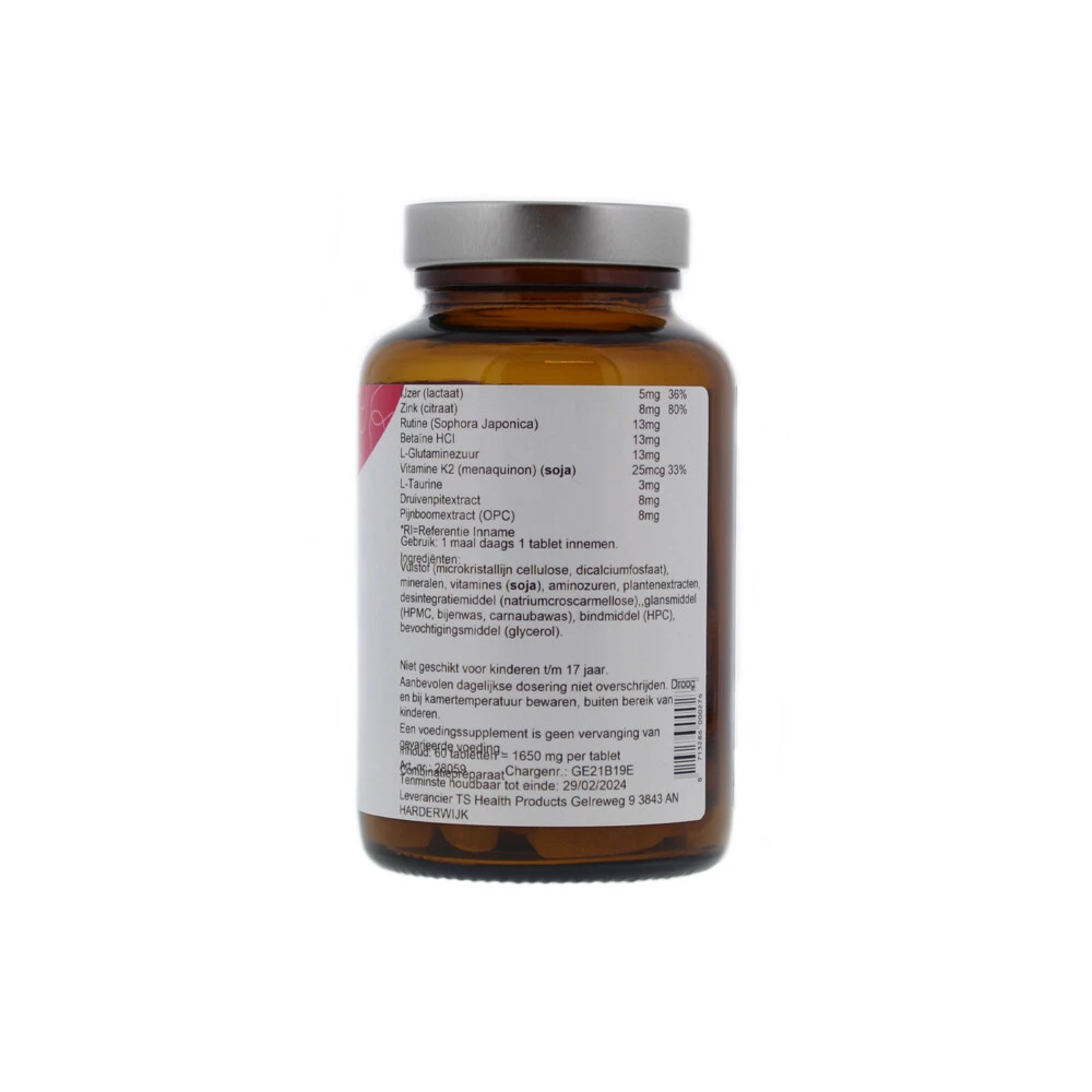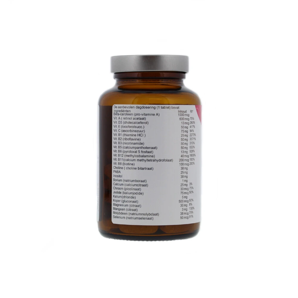 TS Choice Mega MultiTS Choice Mega Multi is een hoog gedoseerde complete vitamine- en mineralenpreparaat. De meeste mineralen zijn aminozuurgebonden, waardoor de opname wordt verbeterd. Ook de toegevoegde plantaardige stoffen verbeteren de opnamen van de vitaminen en mineralen. Daarnaast bevat Mega Multi de belangrijkste antioxidanten.TS Choice Mega Multi werd voorheen verkocht onder de naam Best Choice Mega Multi. Alleen de naam is gewijzigd, de samenstelling niet.Hoog gedoseerd vitamine en min